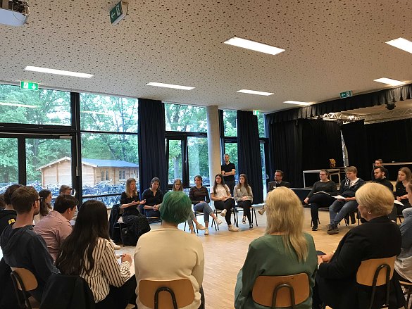 In einer zweistündigen Fragerunde stellten sie sich den Fragen 17 interessierter Schüler/innen der E-Phase. Anwesend waren Derek Eike (SPD), Elisabeth Motschman (CDU), Dr. Kirsten Kappert-Gonther (Bündnis 90/Die Grünen), Pius Freiherr Heereman von Zuydtwyck (FDP) und Doris Achelwin (Die Linke). Moderiert wurde die Fragerunde von zwei Schülerinnen.